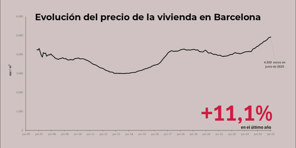 El mercado inmobiliario de Barcelona sigue marcando récords. Este junio de 2025, el precio medio de la vivienda se sitúa en torno a los 5.000