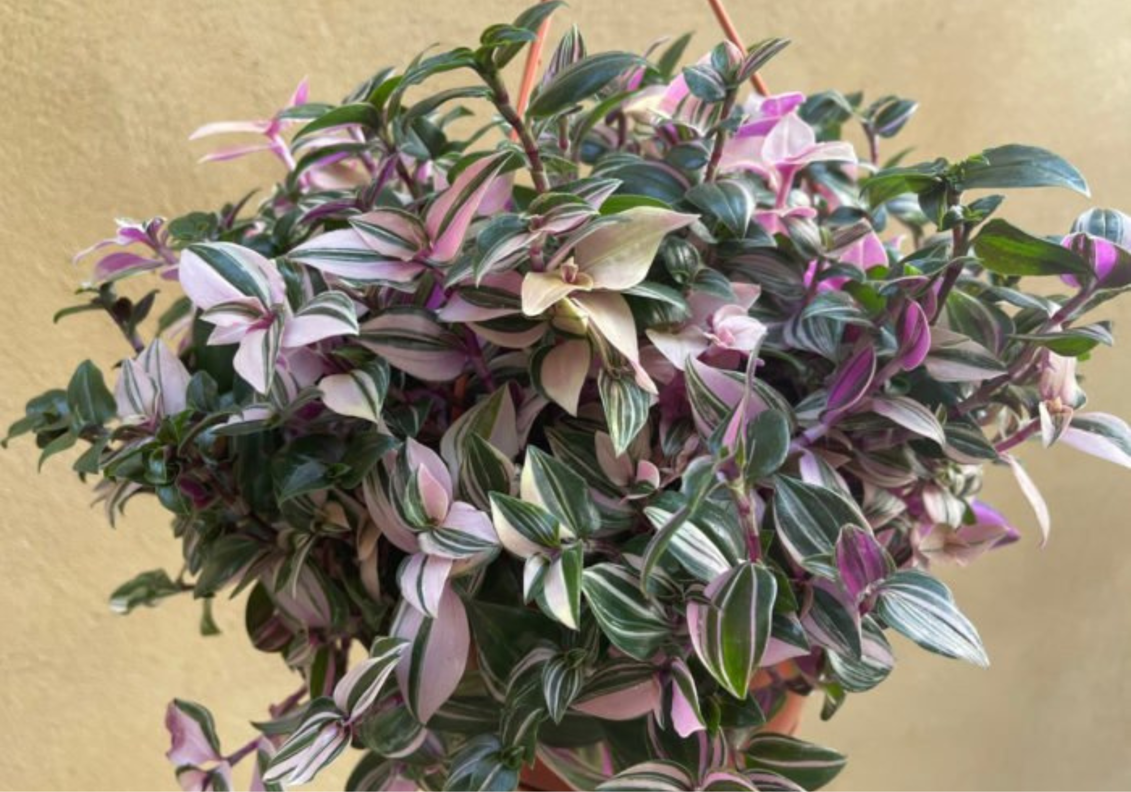 La Tradescantia Ruppius, también conocida como ‘hierba de la miseria’, es una opción ideal si busca una planta colgante que crezca bien en la oscuridad. Esta planta es muy versátil y aporta una elegancia única gracias a sus hojas a rayas en tonos rojos, morados y rosas.