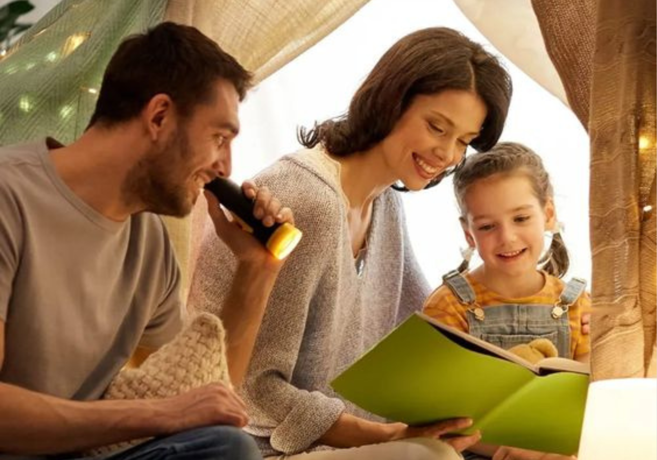 3. Zonas de Lectura y Descanso: Fomentar el amor por la lectura desde una edad temprana es fundamental. Crea un rincón acogedor con almohadas, cojines y mantas donde los niños puedan sentarse a leer sus libros favoritos. Puedes añadir estanterías para libros a su altura, de modo que puedan acceder fácilmente a ellos y elegir lo que quieran leer en cualquier momento. ¡Un tipi o una cabaña con sabanas es siempre una idea divertida! No olvides comprar una linterna y lucecitas led.