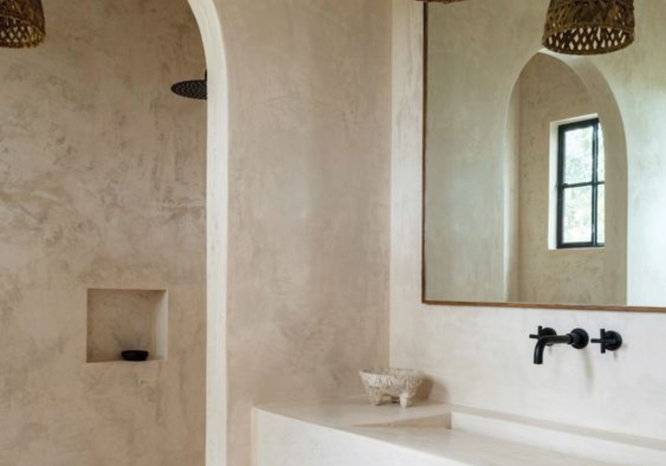 Aunque es un material milenario, el tadelakt ha ganado popularidad en los últimos años debido a sus cualidades decorativas e impermeables. Proveniente de Marruecos, este yeso natural a base de cal ofrece una alternativa eco-friendly al cemento, liberando menos CO2 durante su producción. Con una superficie pulida y lisa que recuerda a la piedra natural, el tadelakt es ideal para espacios húmedos como la ducha, así como para cocinas, revestimientos y otros elementos del hogar.