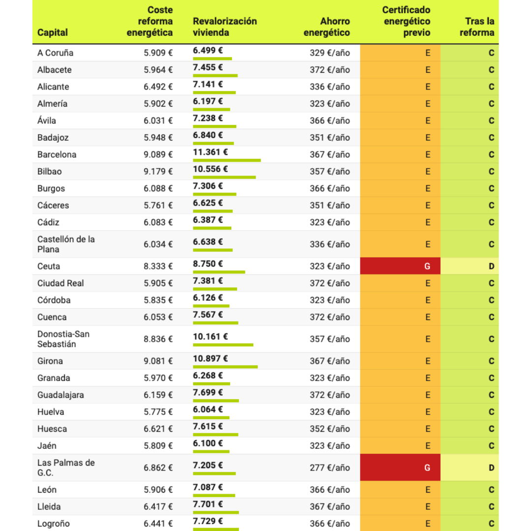 In recent times, the constant increase in energy costs has led families to seriously consider the possibility of making renovations to their homes to improve energy efficiency. These renovations not only have a positive impact on reducing gas and electricity expenses but also have the potential to significantly increase the property’s value. In all Spanish capitals, the cost of energy reform is typically lower than the resulting increase in the property’s value.