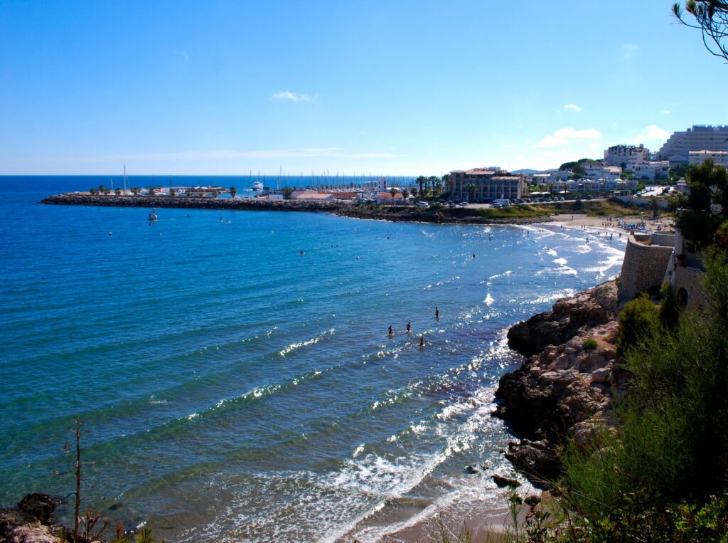 Se encuentra frente a un famoso hotel de Sitges que la creó de forma artificial para dar servicio los turistas alojados.