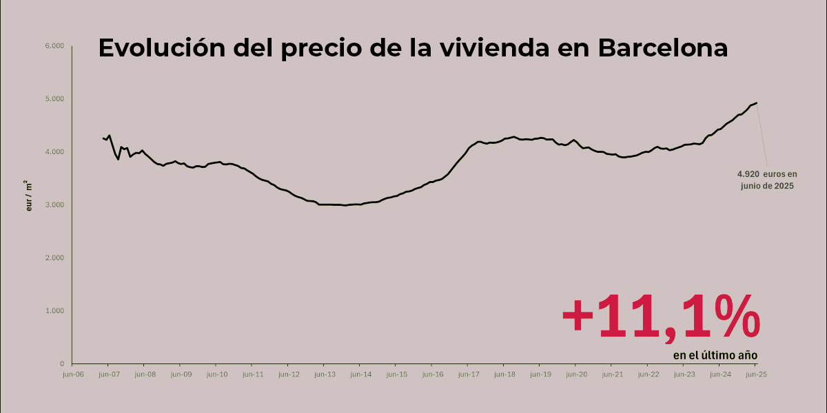 El precio de la vivienda en Barcelona ya roza los 5.000 €/m² en junio de 2025